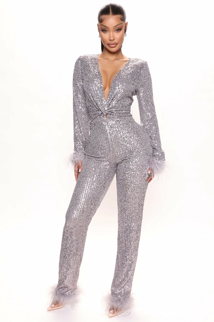 SKU: fashion-nova-6536815968380 Category: Wide Leg Jumpsuits Tags: Bogodec, Color:Grey, Feather, Last Chance, Plus, Sale50, Sequin, Sleeve:Long Sleeve